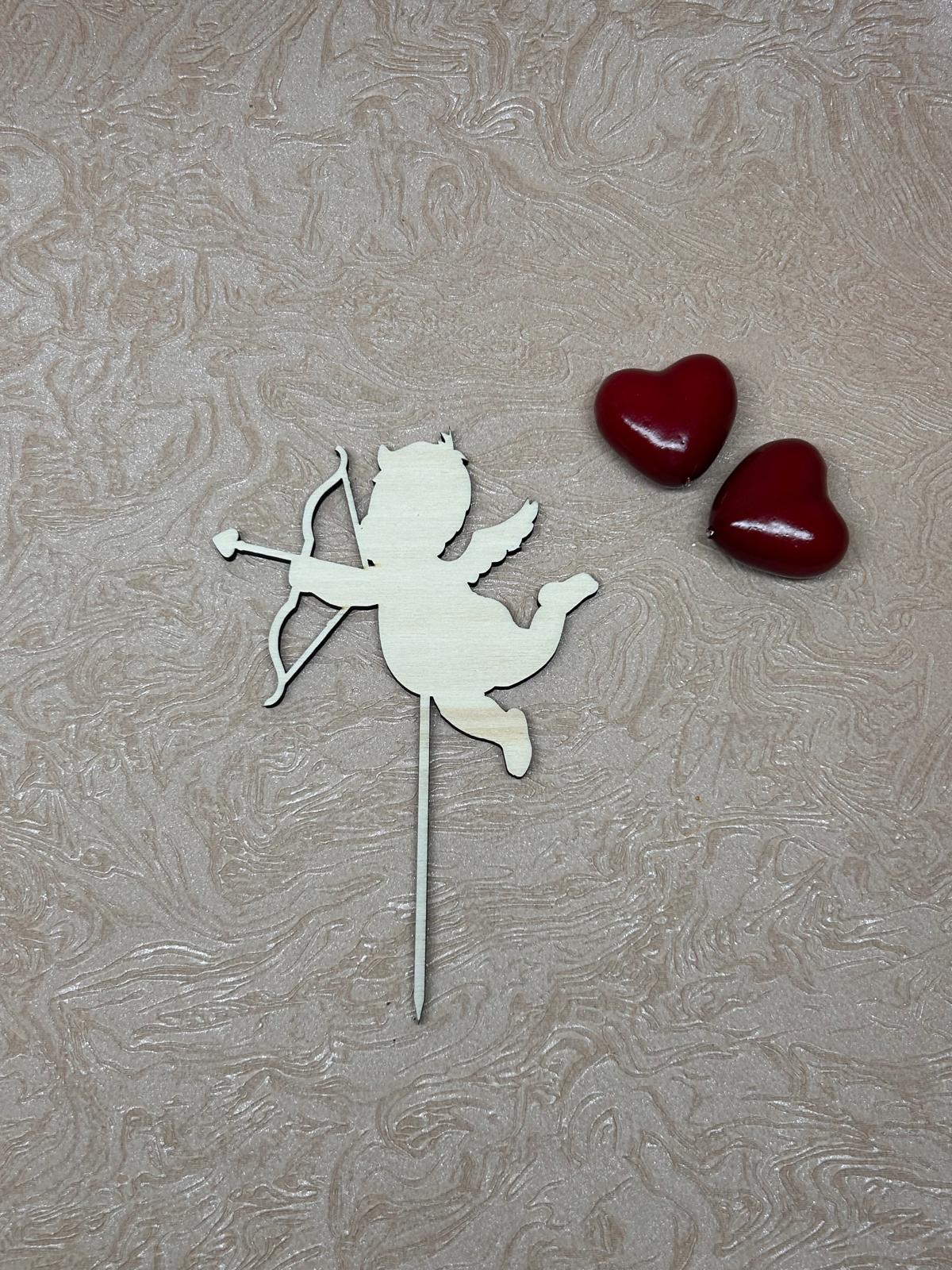 Verzaubern Sie Ihre Valentinstort mit diesem charmanten Amor-Caketopper aus fein lasergeschnittenem Holz – der kleine Liebesgott mit Bogen und Pfeil bringt Romantik direkt auf den Kuchen. Handgefertigt in Deutschland, steht er ca. 15 cm hoch und ist perfekt für Torten bis 30 cm Durchmesser.
