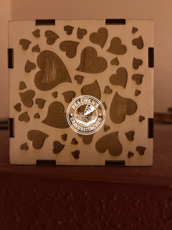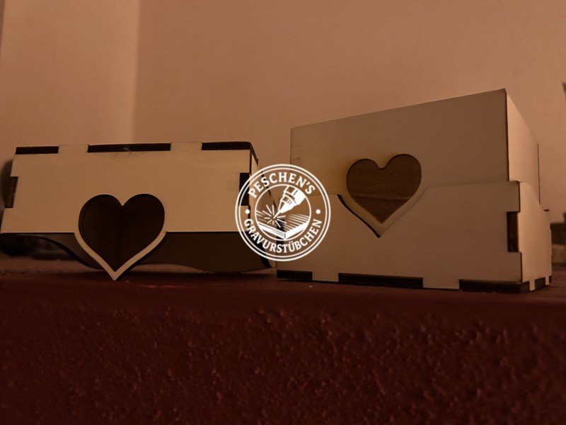 Diese liebevoll gefertigte Kiste mit Herzmotiv ist ein echtes Unikat aus dem Gravurstübchen! Präzise mit dem Laser-Cutter ausgeschnitten und detailreich graviert, vereint sie schlichte Eleganz mit einem warmen, romantischen Design.