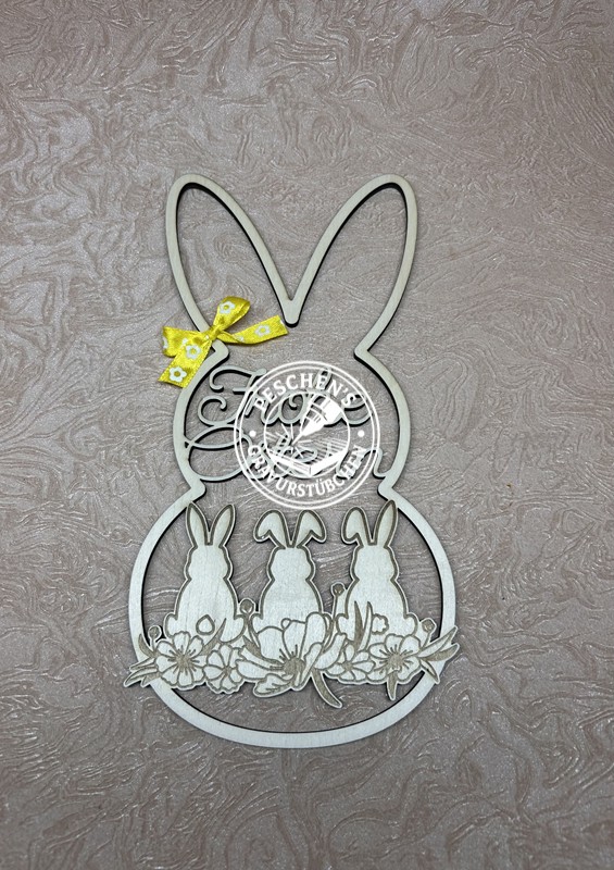 Dieser charmante Fensterkranz/ Türkranz in Hasenform bringt frühlingshafte Frische direkt an deine Fenster und ist ein echter Hingucker zu Ostern oder im Frühling. Die verspielte Hasengestalt wird präzise mit dem Lasercutter aus hochwertigem Schichtholz gefertigt und lädt zum Aufhängen von Girlanden, Eiern oder frischen Blumen ein.