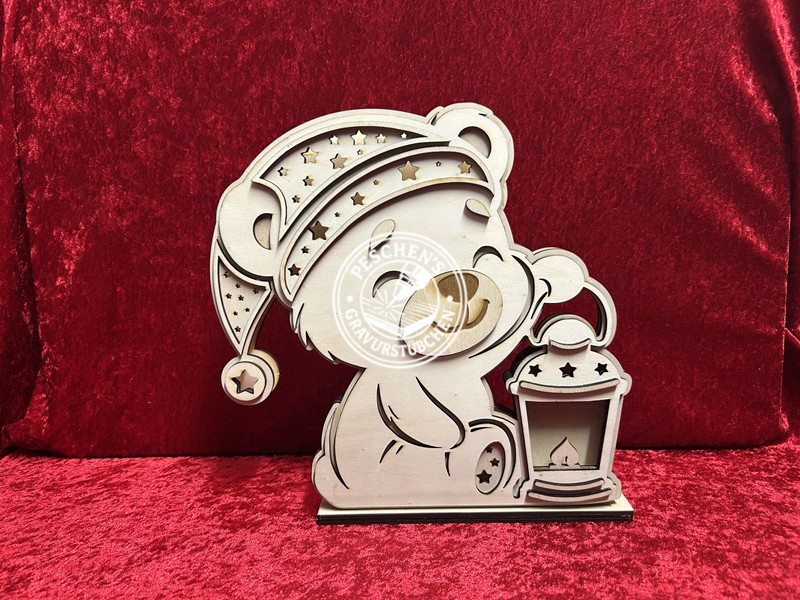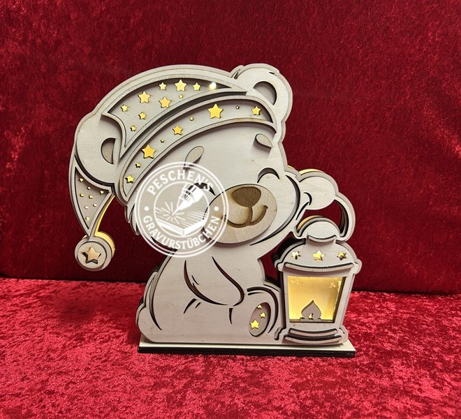 Diese bezaubernde Nachtlampe wurde mit viel Sorgfalt aus hochwertigem Schichtholz gefertigt und im präzisen Lasercut-Verfahren ausgeschnitten. Das niedliche Bärenmotiv bringt eine sanfte, beruhigende Stimmung ins Kinderzimmer und sorgt mit ihrem warmen Licht für Geborgenheit beim Einschlafen.