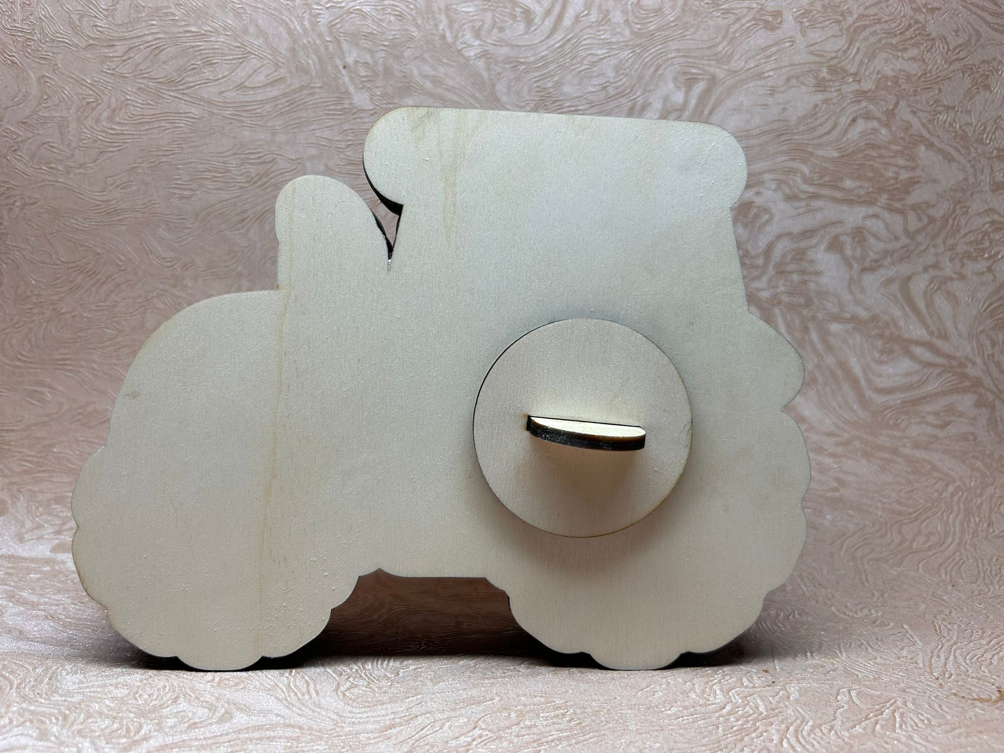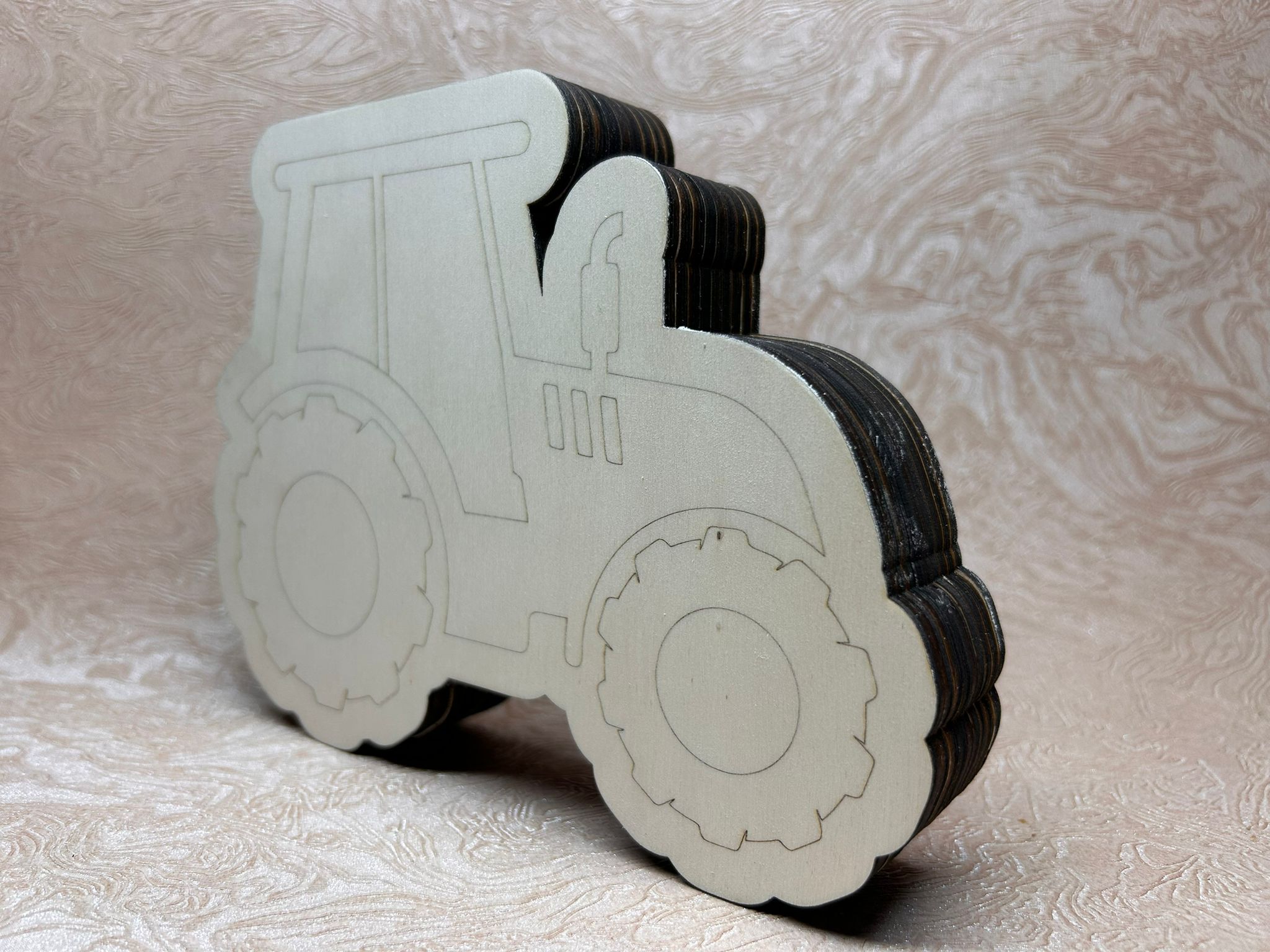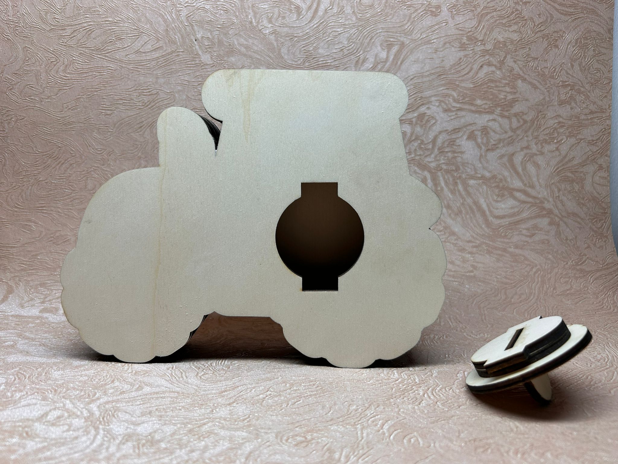 Diese niedliche Spardose in Traktorform ist der perfekte Begleiter für kleine Sparfüchse und Traktor-Fans! Gefertigt aus hochwertigem Holz und präzise mit dem Lasercutter gefertigt, überzeugt sie durch ihr detailreiches Design und ihre natürliche Optik.