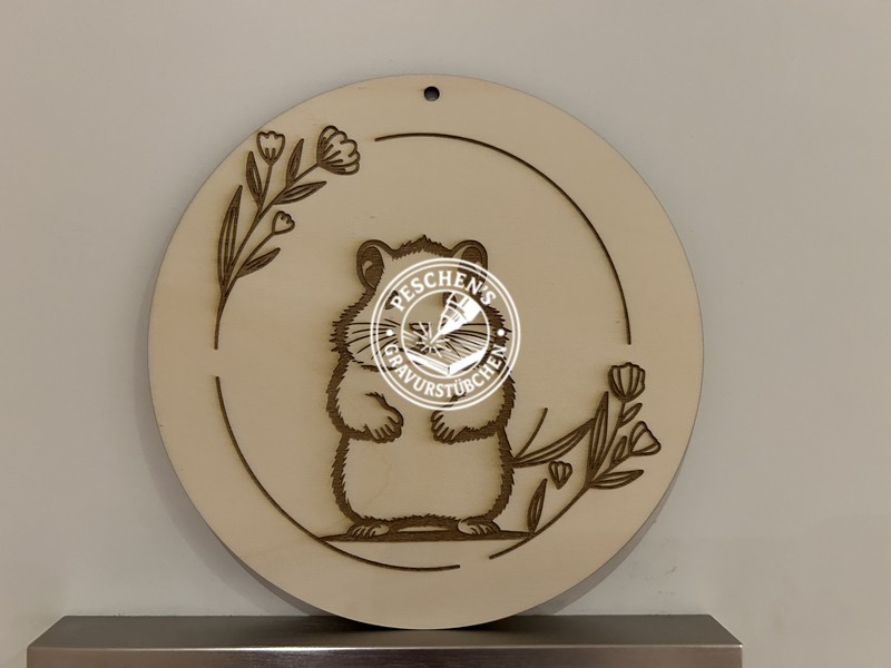 Dieses stilvolle Türhänger wird mit viel Liebe zum Detail und höchster Präzision im Lasercutter gefertigt. Mit einem Durchmesser von 26 cm bietet es ausreichend Platz für dein individuelles Wunschbild und einen persönlichen Text, die dauerhaft und detailgenau eingraviert werden.
