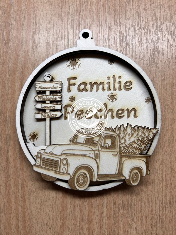 Dieser liebevoll gestaltete Türhänger wird mit modernster Lasercut-Technik aus hochwertigem Holz gefertigt und individuell nach Wunsch personalisiert. Mit seinem eleganten Design ist er nicht nur ein schöner Blickfang an Türen, sondern auch ideal als Fensterhänger oder sogar in kleinerer Ausführung als Baumhänger geeignet. Das Namensschild ist individuell an die Familien Mitglieder anpassbar. Es besteht aus 3 Schichten.